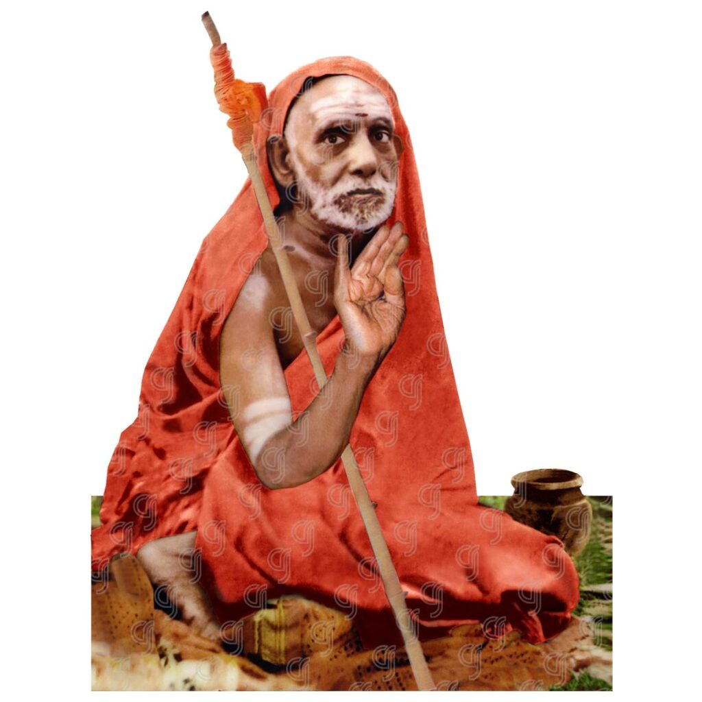 Jagat Guru Sri Chandrashekarendra Mahaswamigal (1894 – 1994) was the sixty-eighth Shankaracharya of the Kaanchi Kaamakoti Peetam. He was born as Swaminathan Sharma, and he belonged to a Kannada-speaking Smartha Brahmin family. His parents were Subramania Sastry and Mahalakshmi. The mother hailed from Eachaangudi village near Thiruvaiaaru. The saint happened to be the second child of his parents and his upanayanam was performed at Thindivanam during the year 1905. He was a precautious child and became well-versed in the scriptures even during his earlier days.